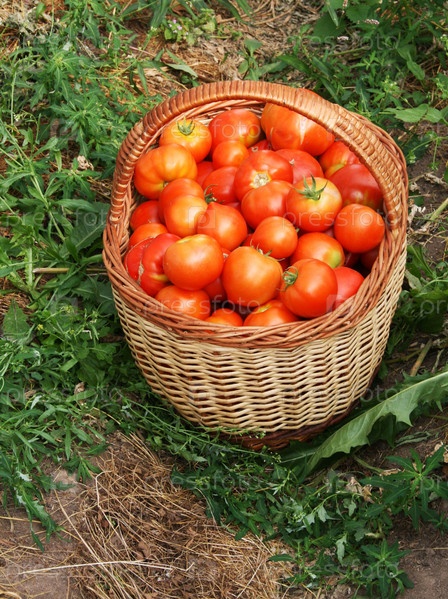 Корзина с красными помидорами