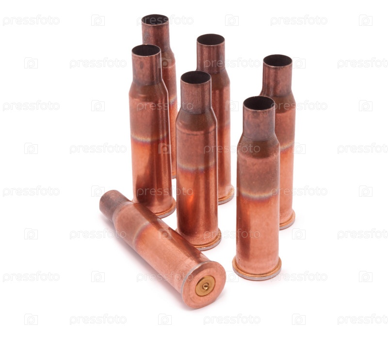Гильзы от патронов на белом фоне