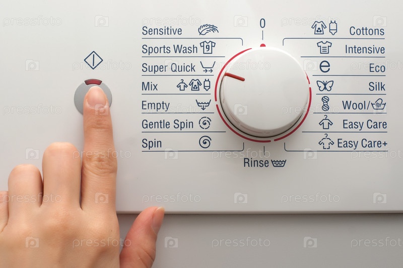 Нажатие кнопки питания стиральной машины