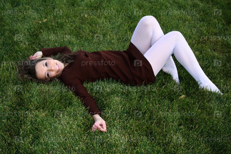 Улыбающаяся девушка на газоне