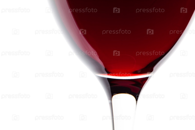 Фрагмент бокала с красным вином на белом фоне