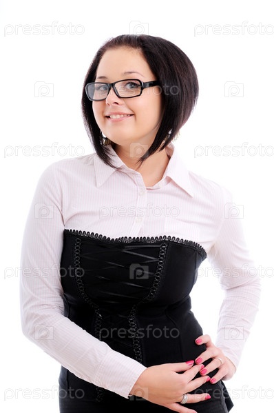 Портрет симпатичной бизнес-леди в очках на белом фоне