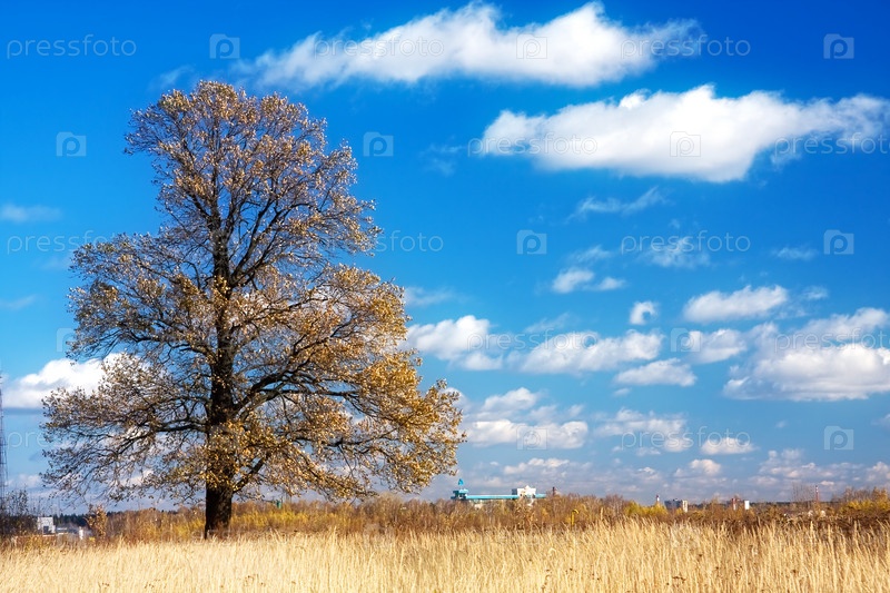 Одинокое дерево в поле на фоне неба