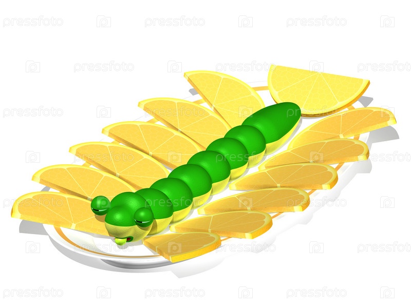 Мультипликационная гусеница на тарелке с лимонами