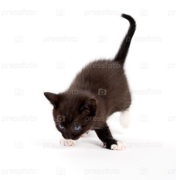 Черный котенок на белом фоне