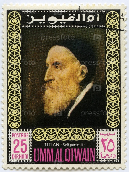 Старинная почтовая марка Объединенных Арабских Эмиратов с портретом Тициана
