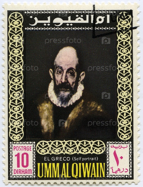 Старинная почтовая марка Объединенных Арабских Эмиратов с портретом Эль Греко