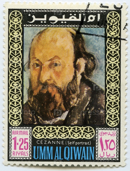 Старинная почтовая марка Объединенных Арабских Эмиратов с портретом Сезанна