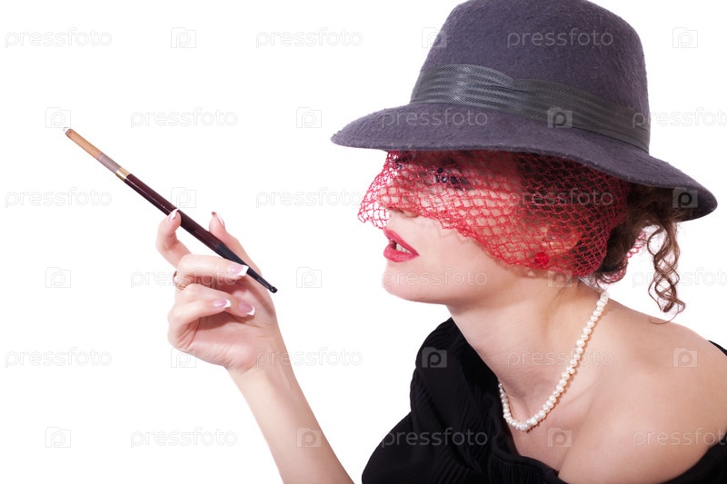 Портрет молодой женщины в шляпе с сигаретой