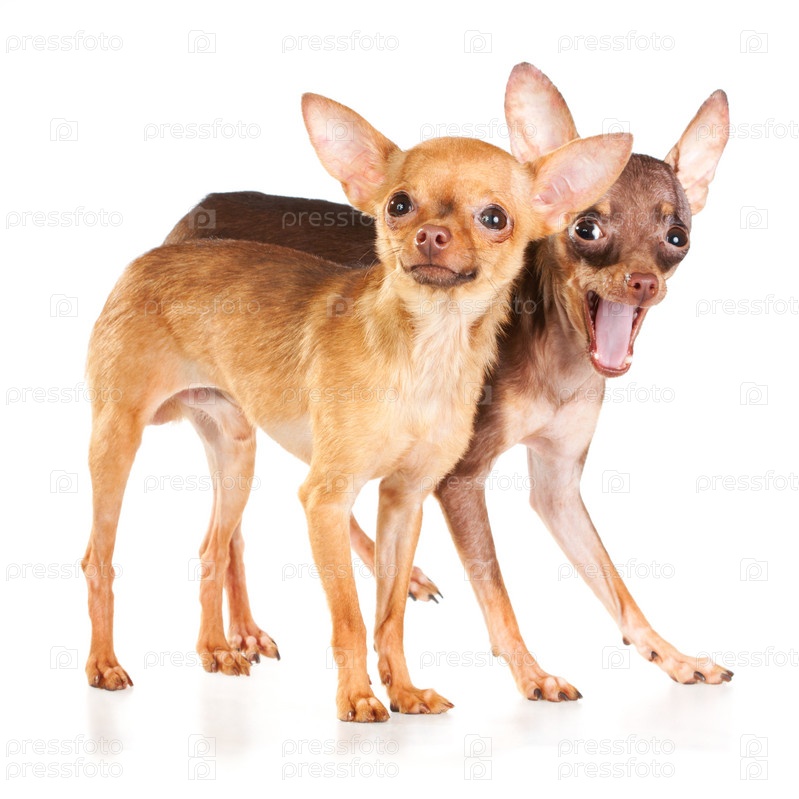 Две собаки породы русский той терьер на белом фоне