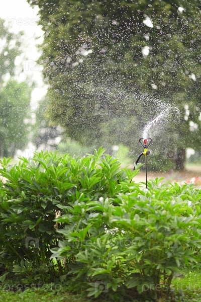 Летний сад во время поливки