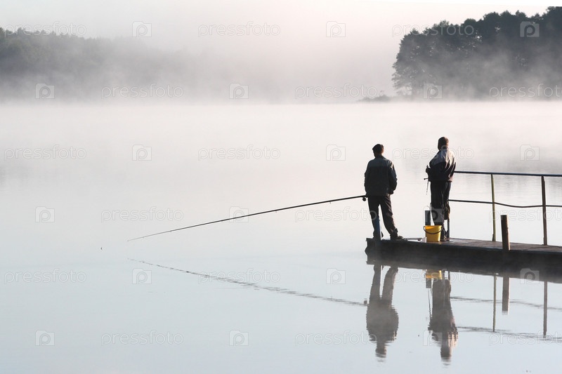 Два рыбака на реке туманным утром