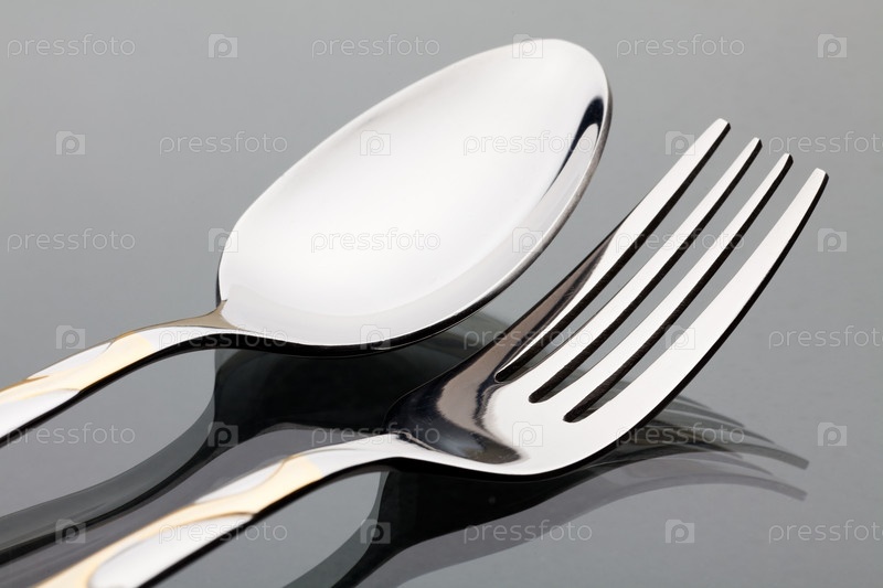 Ложка и вилка на стеклянном столе