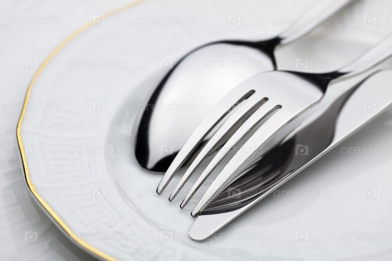 Нож, вилка и ложка на тарелке