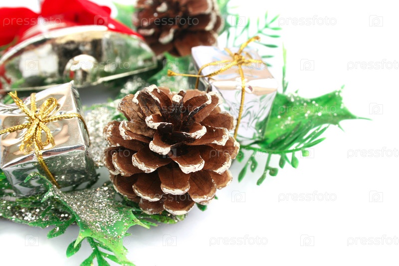 Новогодние украшения, изолированные на белом фоне