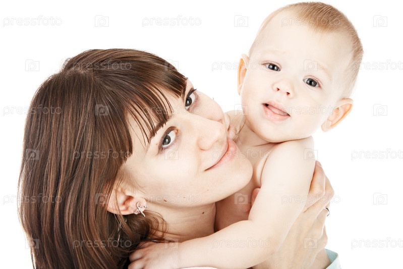 Мама с ребенком на белом фоне