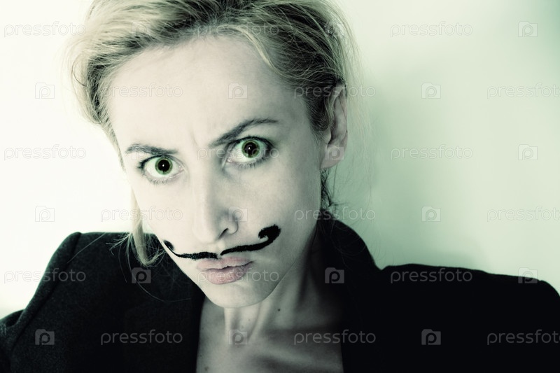 Красивая молодая женщина с нарисованными усами