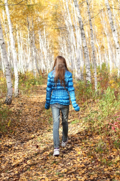 Одинокая девушка в осеннем лесу