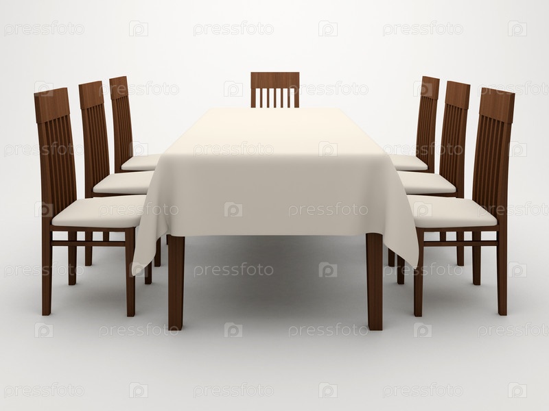Стол и стулья на белом фоне