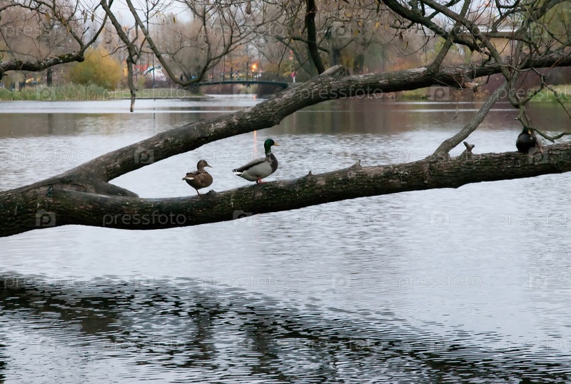Утки на упавшем дереве