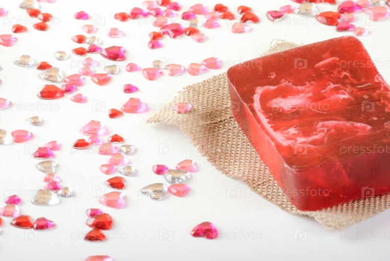 Красный кусок мыла на белом фоне