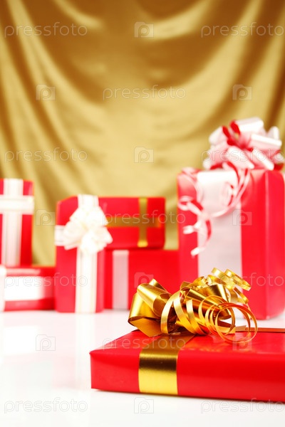 Красивые подарки на красном фоне