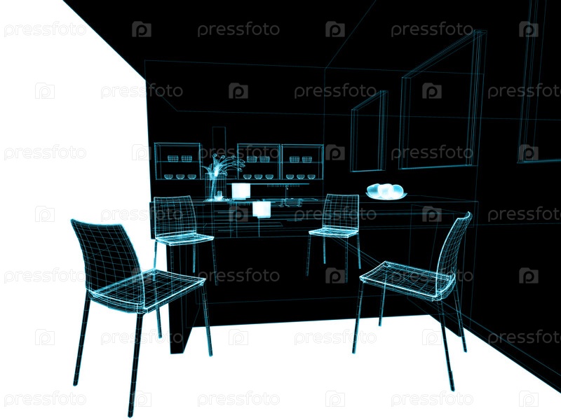 Эскиз интерьера современной кухни, 3D