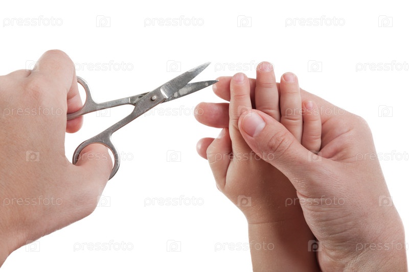 Взрослый человек подстригает ногти малышу