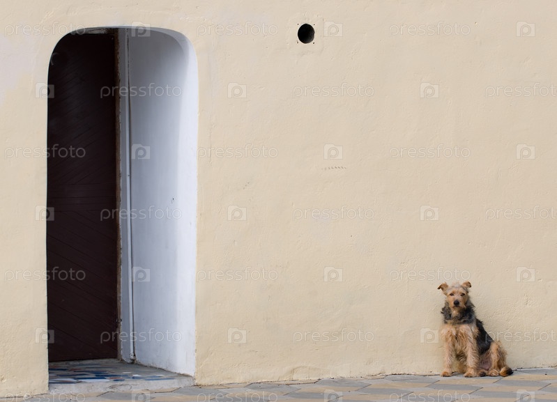 Собака у входа в дом