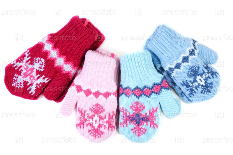 Детские вязаные варежки с узором на белом фоне