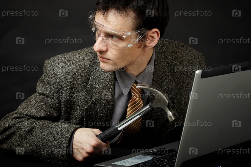 Человек собирается сломать компьютер