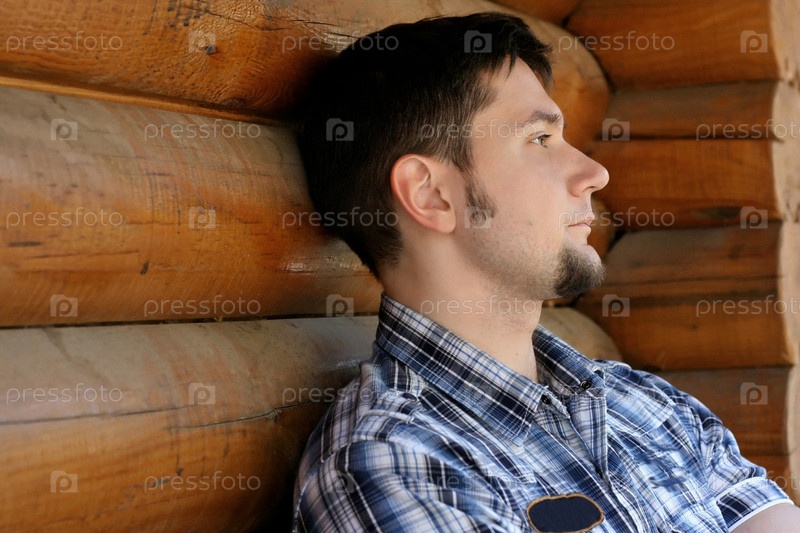 Молодой человек на фоне сруба
