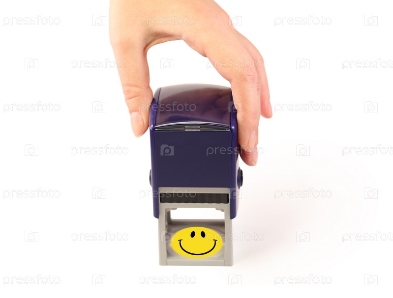 Рука ставит печать в виде смайлика