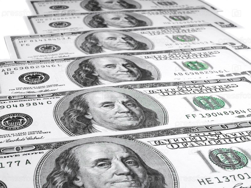Доллары США на белом фоне