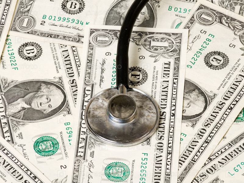 Американские доллары и стетоскоп крупным планом