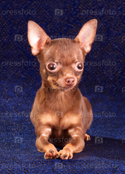 Русский той-терьер на синем фоне