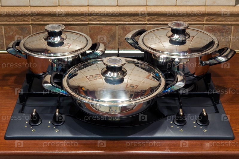 Набор кастрюль на кухонной плите