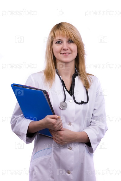 Женщина врач с папками в руках