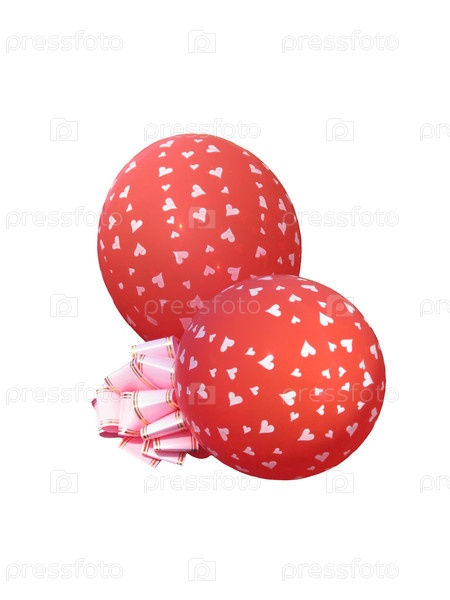 Два воздушных шара с изображенными на них сердечками