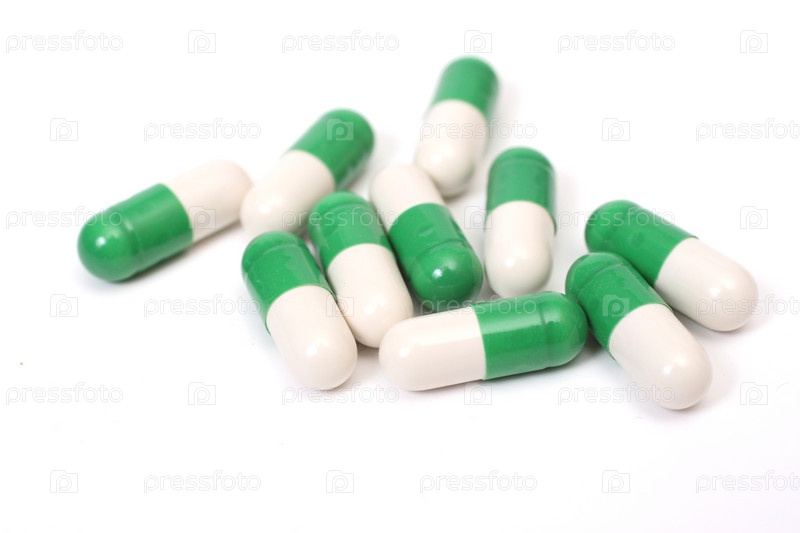 Десять бело-зеленых капсул