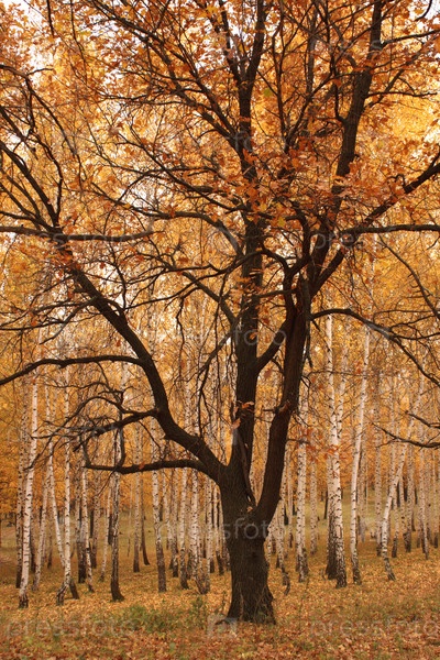 Осенний дуб среди берез