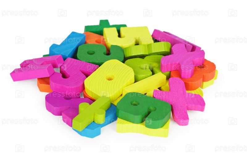 Разноцветные деревянные цифры на белом фоне