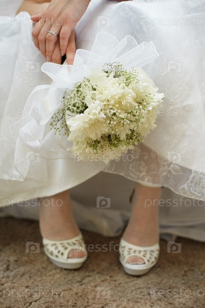 Невеста держит в руках свадебный букет