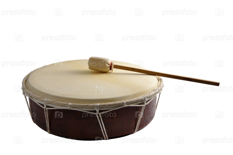 Барабан с палочкой на белом фоне