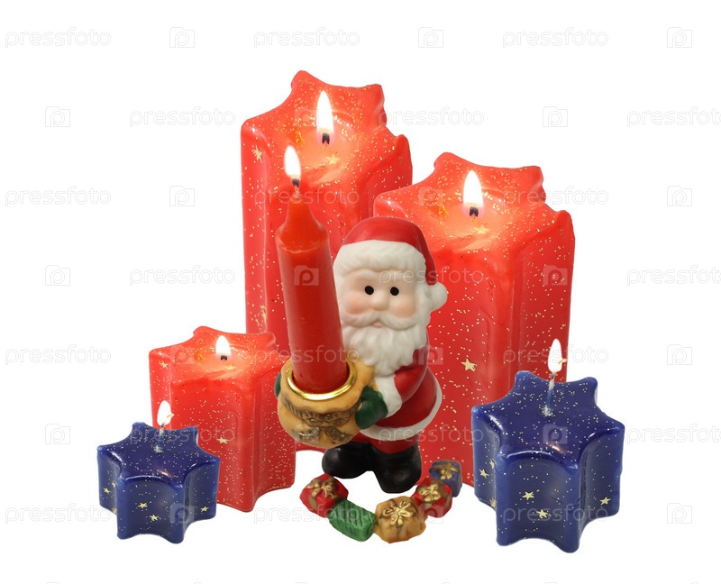 Красно-синие свечи горят и светятся на белом фоне