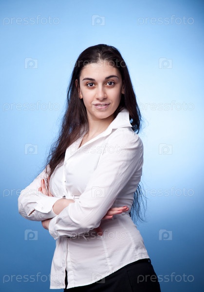 Портрет девушки на синем фоне