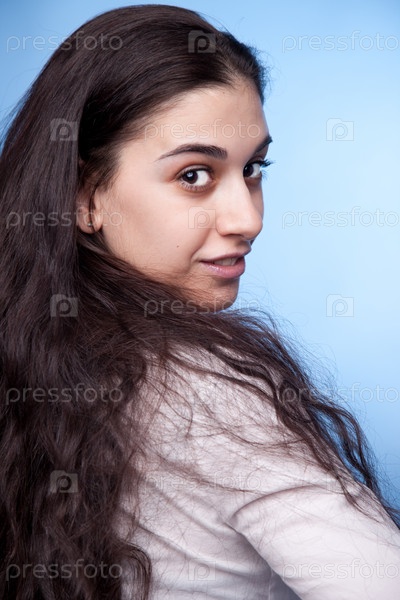 Портрет красивой девушки на синем фоне