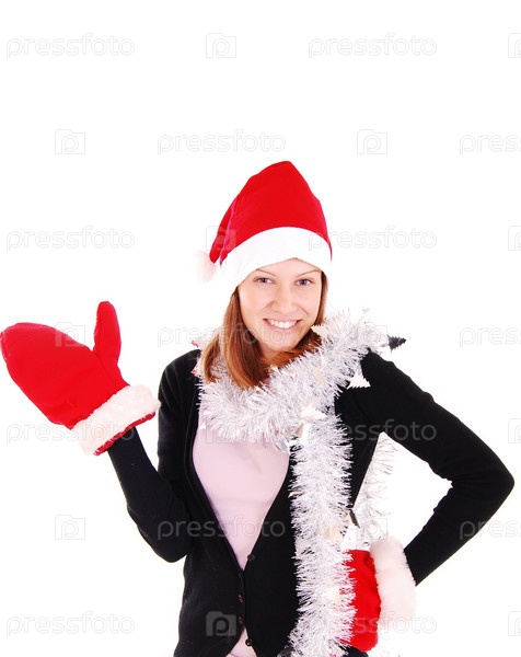 Девушка в новогоднем костюме на белом фоне