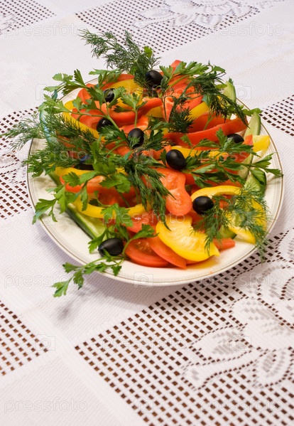 Нарезанные овощи на белом блюде