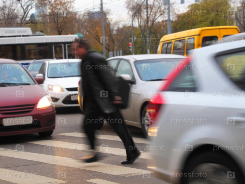 Мужчина, переходящий дорогу по пешеходному переходу